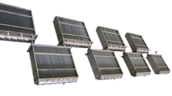 Suction coolers, intermediate coolers, stepped coolers or aftercoolers are used to increase or maintain respectively performance characteristics of gas compressors, air compressors, turbines, generators or large motors. These are water-cooled finned tube heat exchangers designed to cool the intake air, compressed air or other industrial gases such as oxygen, hydrogen, chlorine or similar. Here, the cooling water flows inside the tubes and the gaseous fluid to be cooled flows around the finned tubes. |